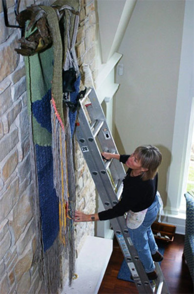 My specialty is commission fiber art for the wall. Work that is designed, artist and art collector alike, for large wall spaces. Walls for large scale artwork to be viewed from a distance, interiors that require visual or acoustic softening, a space that detailed artwork would not work.