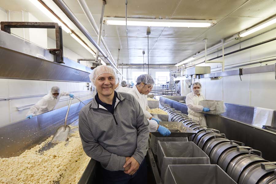 Renard’s Cheese uses milk from dairy farms within 30 miles of the factory, primarily from within Door County. Master Cheese Maker Chris Renard is a third-generation cheesemaker, following in the footsteps of his grandfather and father. Since launching the company in 1961, the production has more than tripled. The factory processes about 90,000 pounds of milk a day and makes more than 50 types of cheese and cheese spreads.